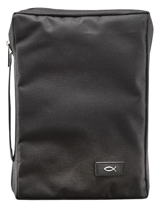 This made to last Bible/book case is constructed from high-grade polyester. Features a zipped nylon mesh inner pocket with pen loop as well as a convenient extra outer pocket.