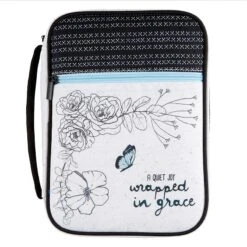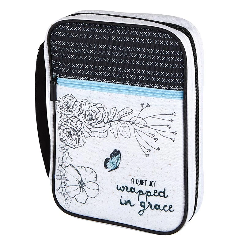 Bible Cover – Wrapped in Grace Beautiful art by AmyLee Weeks Fits Standard-sized Bibles (6x9x1.5 or smaller) Convenient front-zippered pocket Inside