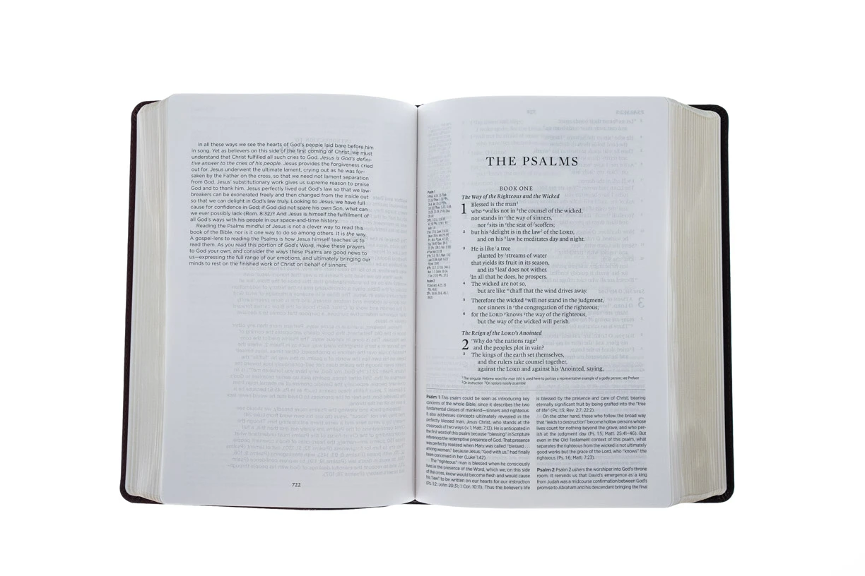 The ESV Gospel Transformation Study Bible is designed to help readers see Christ in all of Scripture, and grace for all of life.It features book introductions, gospel-centered study notes, and a series of all-new articles?written by a team of over 50 pastors and scholars. This content explains passage-by-passage how God’s redemptive purposes culminate in the gospel and apply to the lives of believers today.Readers will be challenged to see how the message of the gospel transforms sinners from the inside out. Over 375,000 words of gospel-centered study notesIntroduction that outlines specific uses for the BibleUpdated design and typesetting based on the original ESV Gospel Transformation Bible released in 2013Includes 5 new articles on topics such as the relationship between the Old and New Testaments, the gospel in the Old Testament, the covenants, and moreBook introductionsLifetime guaranteeConcordance80,000 cross-referencesRibbon markerSmyth-sewn bindingSize: 6.125″ x 9.125″9-point Bible text; 8-point study notes2,096 pagesSingle-column, paragraph formatPackaging: Slipcase