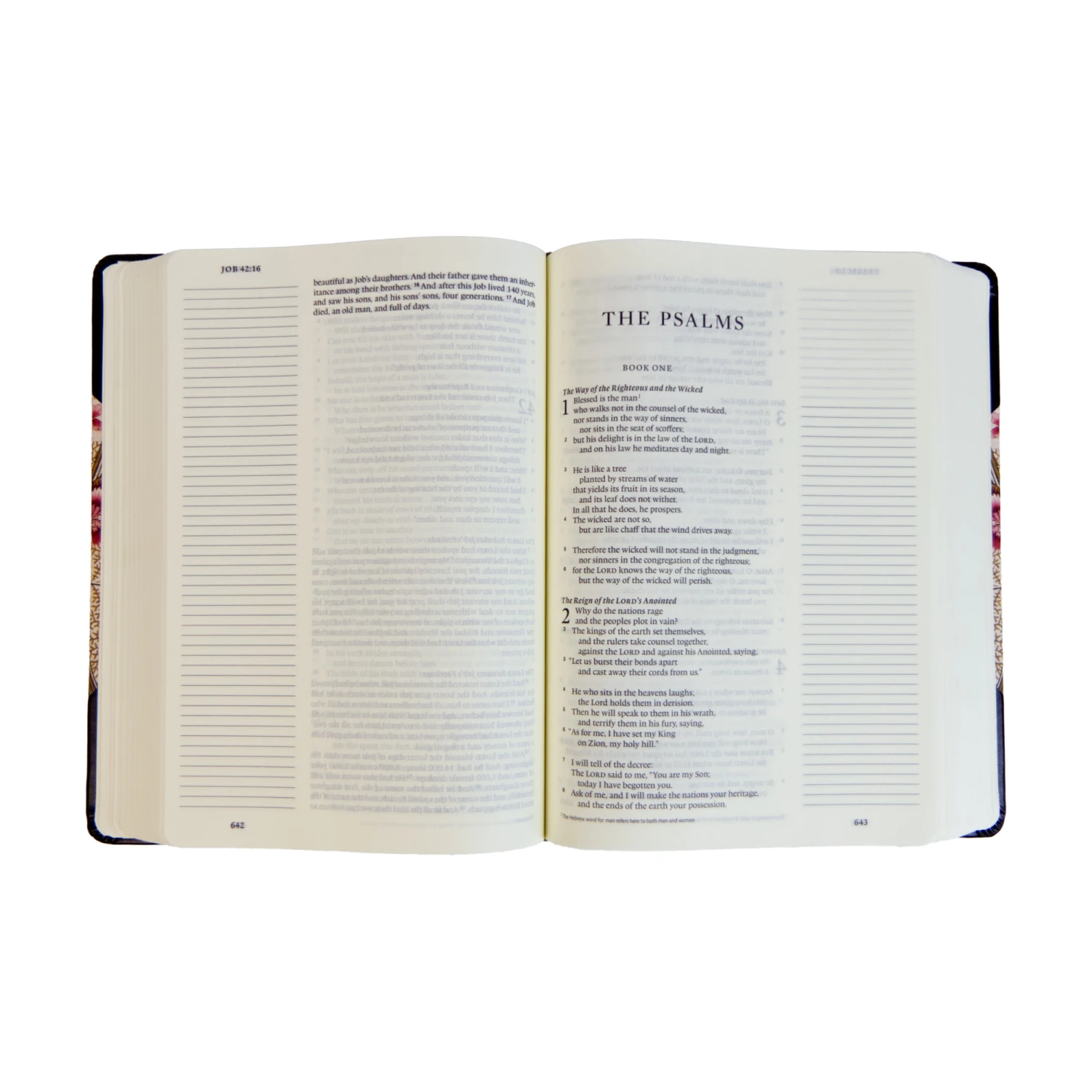 The ESV Single Column Journaling Bible, Large Print features the same high-quality Bible paper and two-inch ruled margins as the original ESV Single