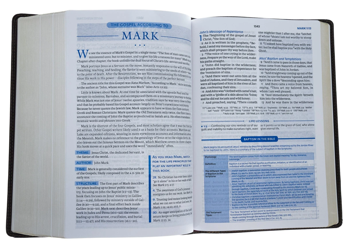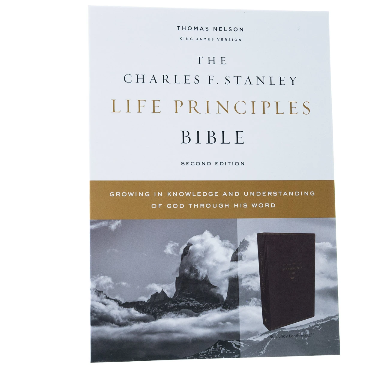 The Charles F. Stanley Life Principles Bible is designed to lead believers into a life-changing relationship with Jesus Christ, and to help them experience the Good News about God’s mighty kindness and love. Built around 30 Life Principles Dr. Stanley has gleaned from Scripture during his fifty years of teaching and pastoral ministry, this Bible is sure to encourage and strengthen believers as they seek to lead faithful, joyful lives that please God.With over one million Life Principles Bibles sold to date, the updated second edition is the best way to experience this bestselling classic—with a completely new design featuring Thomas Nelson’s KJV easy-to-read Comfort Print® typeface, 100 specially designed maps and charts that bring biblical places and themes to life, and over 43,000 cross references to enrich your study of the Word.Features include:30 Life Principles articles highlight Dr. Stanley’s essentials for Christian livingMore than 2,500 Life Lessons verse notes bring to life the practical and personal nature of God’s Word to usLife Examples articles draw powerful lessons from the lives of people throughout ScriptureOver 300 highlighted verses make it easy to find God’s promises throughout the Bible text that encourage, strengthen, and bring hopeAnswers to Life’s Questions and What the Bible Says About articles bring scriptural insight to bear on topics of special importance to every believerTopical indexes give immediate access to hundreds of life-giving principles and promises throughout the Old and New TestamentsBook introductions provide an overview of the themes and literary structure of each book, and alert readers to important principles they’ll encounter as they readNew for the 2nd Edition, 100 maps and charts that help important biblical places and themes come alive, and over 43,000 cross references to enrich your studyConcordanceClear and readable Thomas Nelson KJV Comfort Print® typeface11-point print size