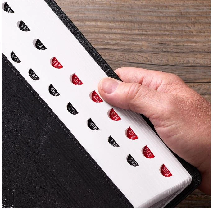 The elegant Black Faux Leather King James Study Bible with Thumb Index will introduce a new way of looking at the classic King James Version text in an