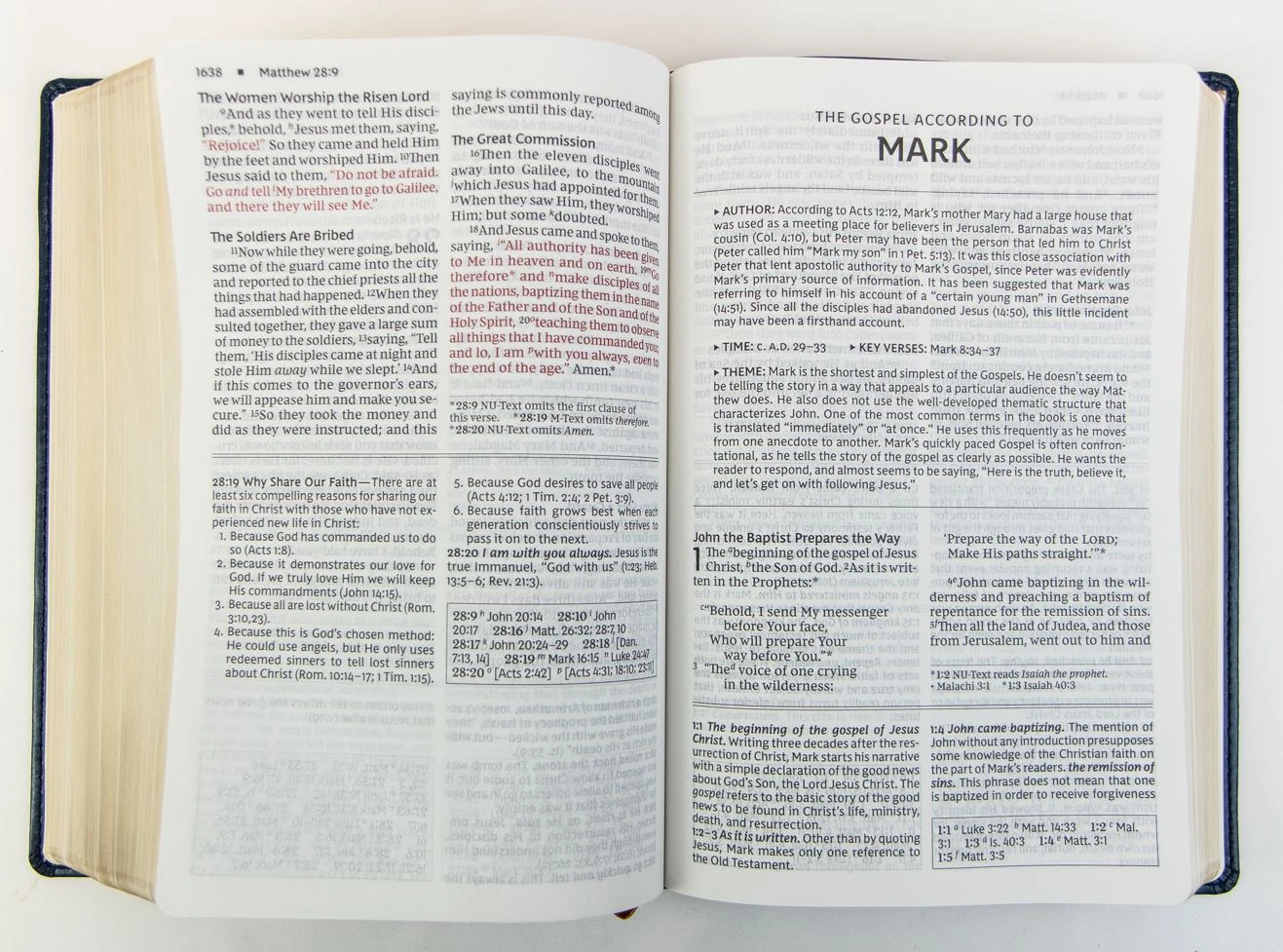Features include: The Presentation page is a special place to personalize this special gift by recording a memory or note Bible book introductions provide