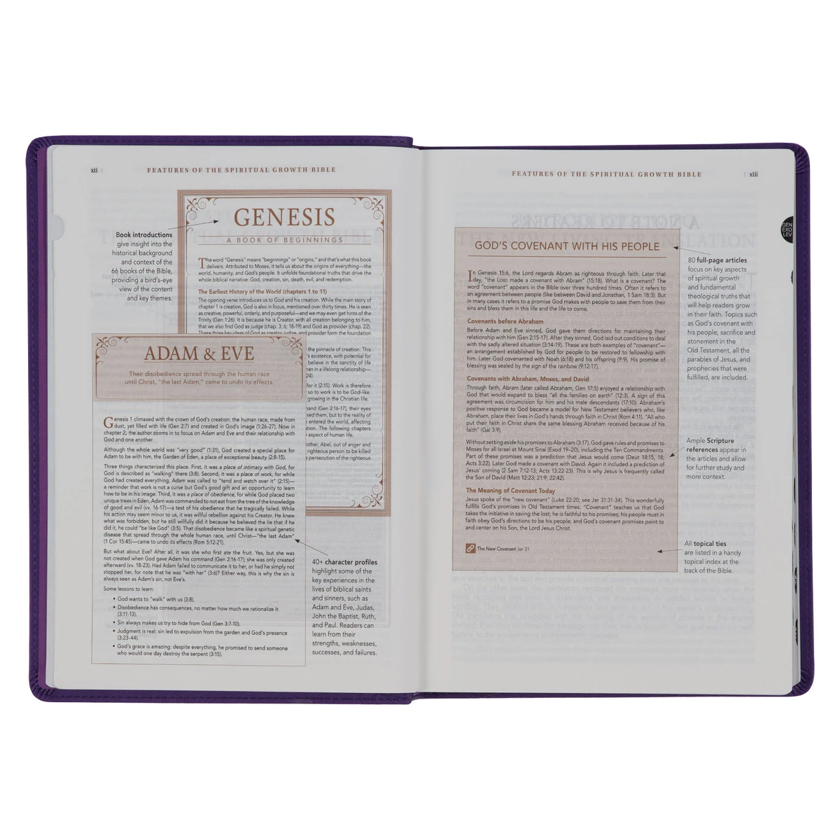 The key to spiritual growth is Bible study, and the Purple Faux Leather Spiritual Growth Bible is an excellent Bible to use for this purpose.
